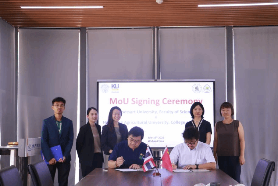 7月16日上午10:00,泰国农业大学代表Kornsorn Srikulnath教授、Chomdao Sinthuvanich副教授、Anchalee Sirikhachornkit副教授、Worapong Singchat博士后与我校代表国际合作与交流部曾红霞部长、高坚教授、曹晓娟教授于东京热