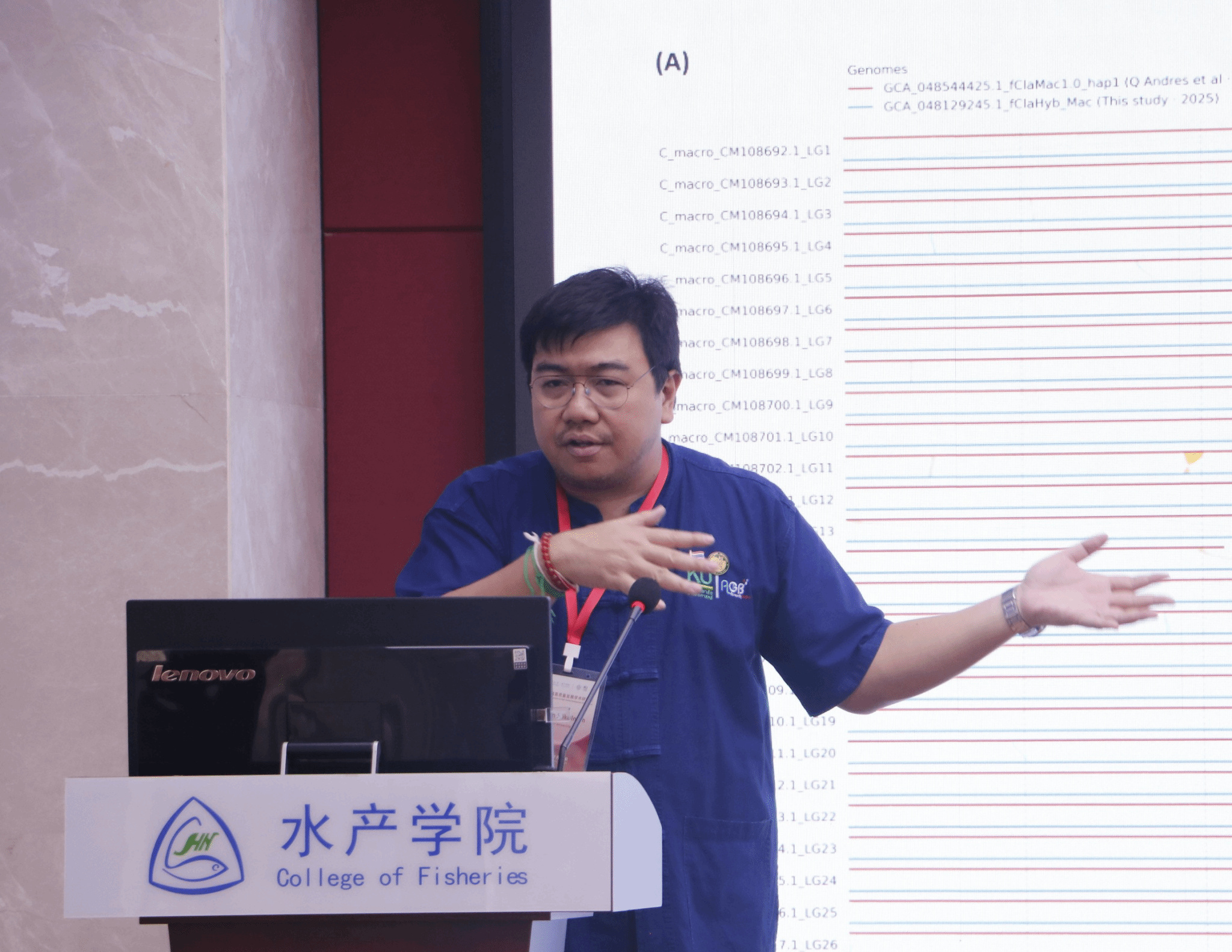 泰国农业大学Kornsorn Srikulnath教授作题为“卫星DNA分析推测胡子鲶的基因组进化和杂交机制”的报告,介绍了可持续鲶鱼养殖的挑战。他强调利用本地鱼类作食物的重要性,指出现有供应不足需扩大种群,并提及解决鱼类质量下降及依赖欧洲物种的问题。报告还探讨了鲶鱼种群管理难题,包括育种计划优化、遗传多样性保护,以及性别决定、杂交影响等相关研究与应对努力,同时说明遗传分析、基因组研究等科学方法在推进鲶鱼育种中的应用。