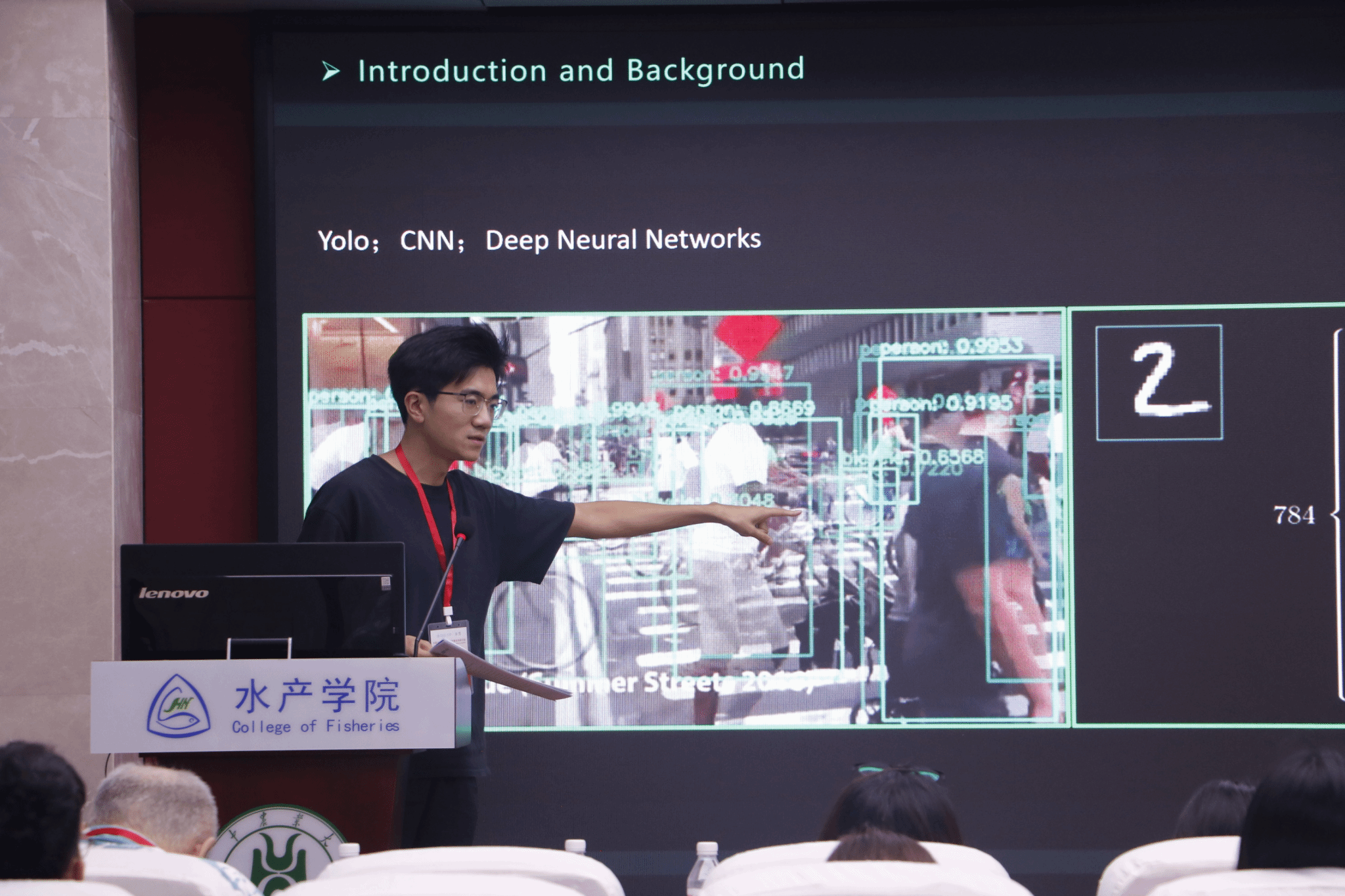 高坚教授和曹小娟教授的学生张雷霆博士作题为“虚拟仿真和深度学习用于鱼类图像合成和体长估计:下水道检测和生物识别算法”的报告,介绍了通过数字孪生实现鱼类图像合成和体长估计的总体架构。这项技术可应用于鱼类的生长监测、饲料转化率评估、个体差异分析,在实践操作中拥有巨大的潜力。