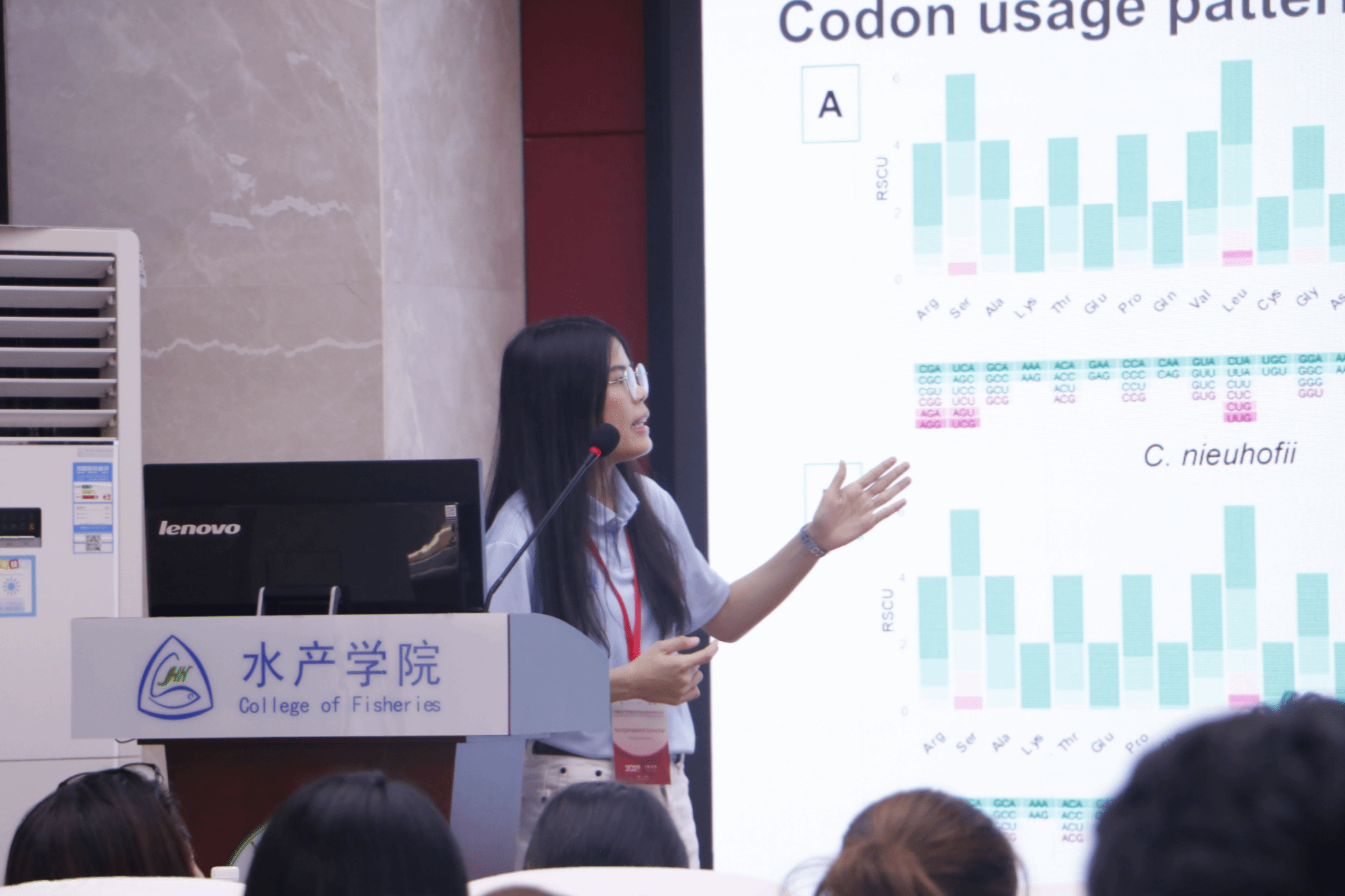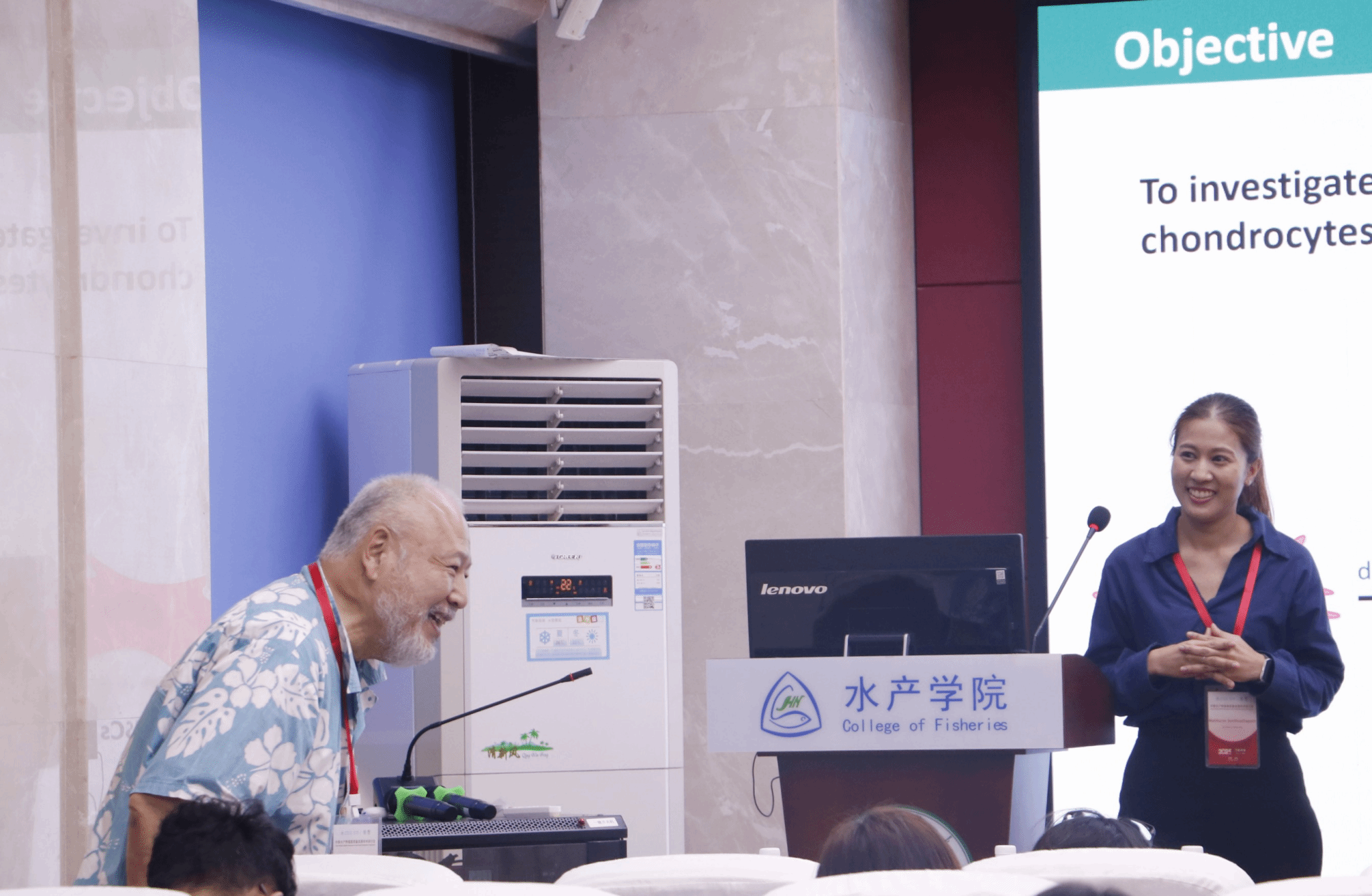 Karnianapond Sornchai博士作题为“尼氏胡子鲶的线粒体基因组和系统发育分析”的报告,介绍了针对D细胞慢性世代的遗传技术,用于评估不同鲶鱼物种配子产生的可能性。这种创新方法倾向于为自然繁殖困难的鱼类,尤其是稀有、濒危或大型种类提供新繁殖途径,通过跨物种细胞移植,为鱼类养殖、物种保护及繁殖控制创造可能。