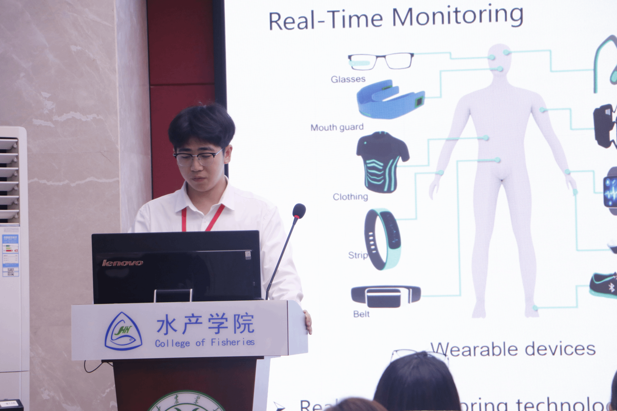 高坚教授和曹小娟教授的学生朱天一博士作题为“黑鲈葡萄糖实时监测技术研究”的报告,介绍了碳氟线固定鱼体结合传感器检测血糖的方法。他以电化学传感器为实时监测技术的主要实施工具,并通过实验验证了其真实可操作性,有助于推动黑鲈葡萄糖实时监测技术的发展。