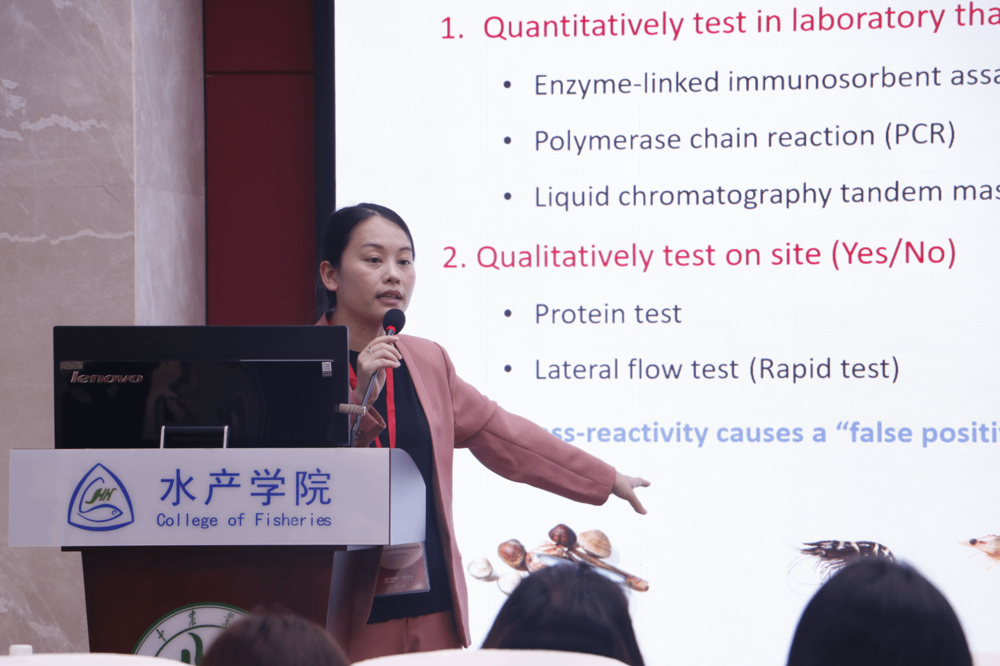 Chomdao Sinthuvanich副教授以“食物过敏原及其交叉反应性:在过敏原检测和食品安全中的意义”为题作报告,阐述了食物过敏的患病率与致命风险。她介绍免疫电化学测试,详解免疫细胞针对特定食物蛋白生成IgE抗体,触发组胺释放引发过敏的机制,最后强调过敏风险随年龄的变化,及食品行业识别并防范加工设施交叉污染的实践意义。