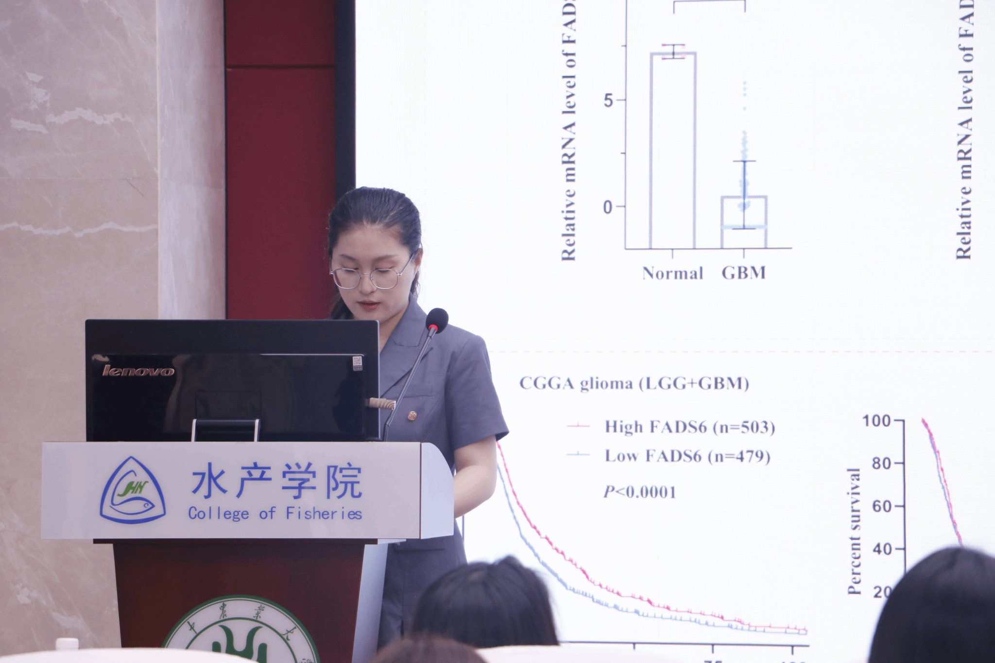 高坚教授和曹小娟教授的学生周颖博士作题为“Fads6通过泛素化介导的Cdkn2A调控诱导铁死亡并抑制胶质母细胞瘤的进展”的报告,介绍了FADS6在GBM中发挥抑癌基因的功能。FADS6通过与CDKN2A相互作用,调节CDKN2A泛素化水平,从而触发脂质过氧化诱导的GBM细胞铁死亡,最终抑制肿瘤进展。