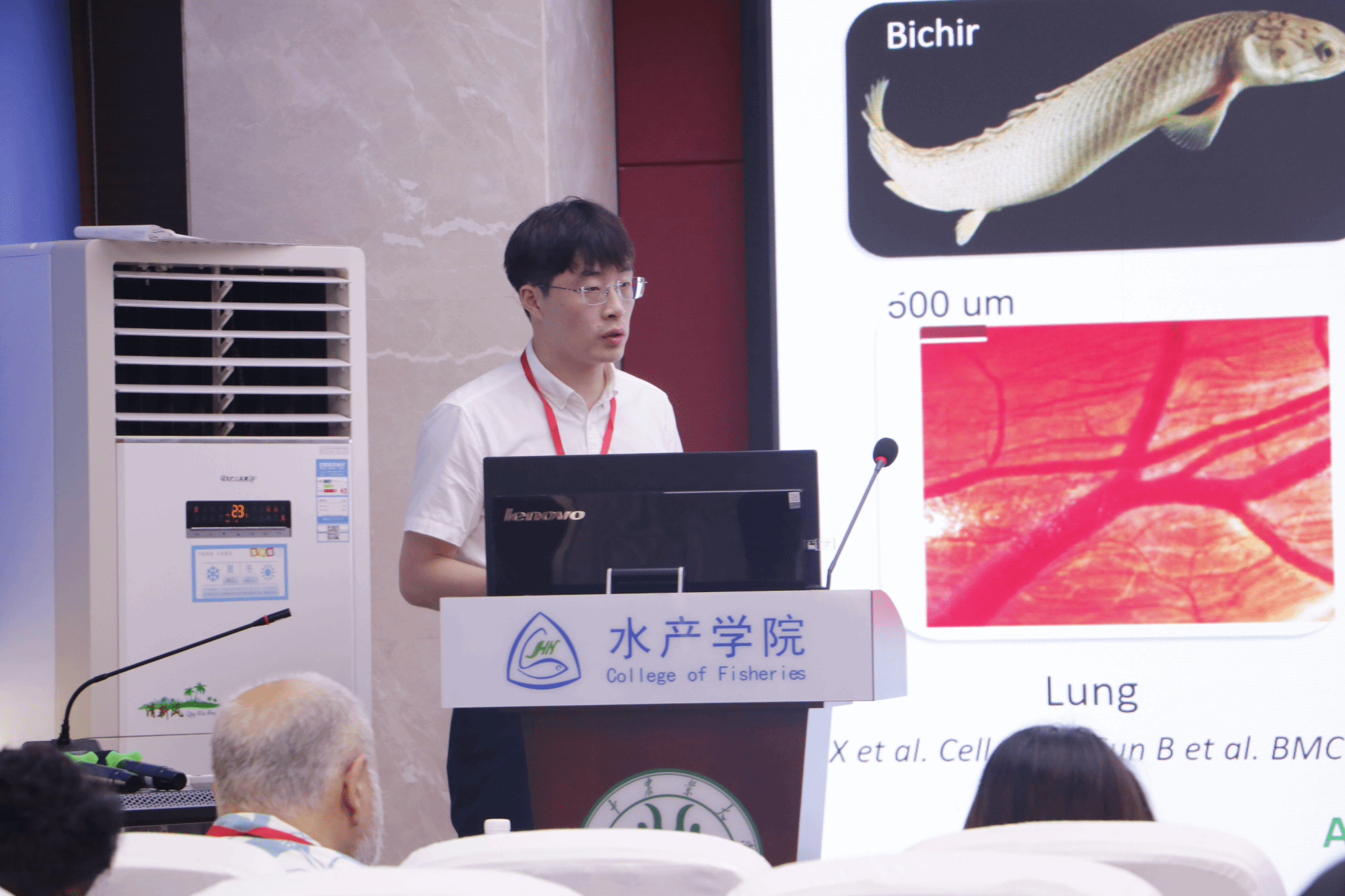 孙兵博士后作题为“泥鳅单倍型解析基因组和Mex3a参与鱼类呼吸的鉴定”的报告,介绍了泥鳅基因组组装及肠道呼吸基因的进化分析,解析了高质量的泥鳅(泥鳅,吸气性鱼类)基因组。肠道的mex3a是鱼类的呼吸基因,Mex3a缺失通过与Tbx20的相互作用抑制肌细胞的发生,从而降低泥鳅的呼吸能力。
