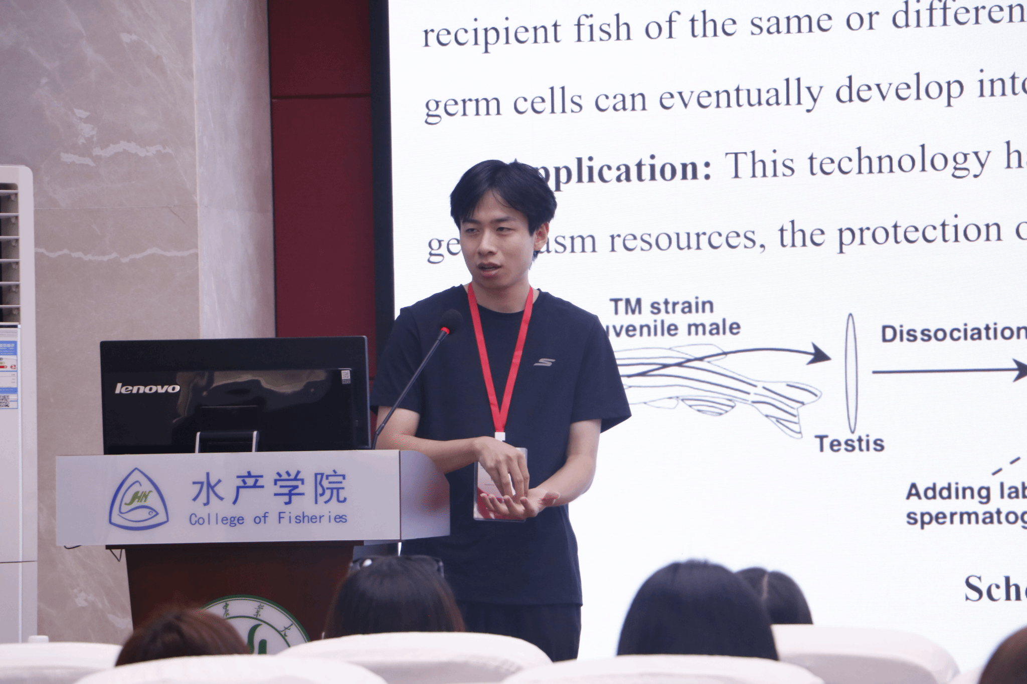 高坚教授和曹小娟教授的学生梅熠辉博士作题为“从鳅科鱼类开始对生殖细胞移植边界的初步探索”的报告,介绍了移植的生殖干细胞可以在合适的受体鱼中产生雄性和雌性配子,可为难以直接人工繁殖的鱼类提供一种新的方法。同时,他还通过实践提出了一些改进意见比如受体鱼的选择及合适的操作手法。