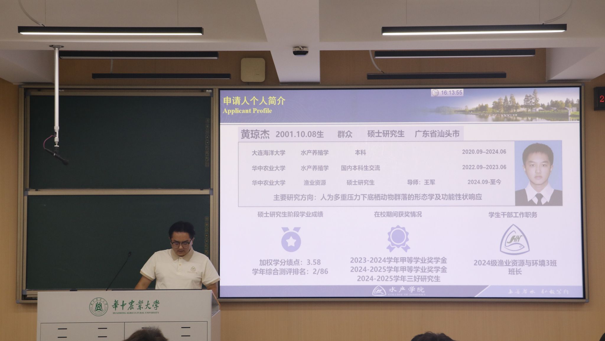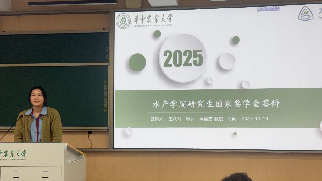 于跃2024年获评国家奖学金,在上一年度发表2项刀鲚性别鉴定国家专利,并带领团队获2025中国国际大学生创新大赛(湖北复赛)金奖。余岸艮专注水产动物代谢调控,发表4篇一作论文,成果揭示脂质降解机制、解析高脂饮食损伤机制;多次在国际会议作报告,获水产学会年会“优秀研究生报告”一等奖。
