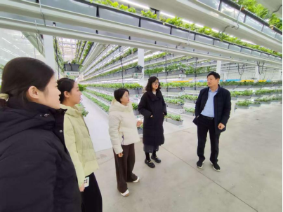 随后,曹玉琼一行前往茌平区信发农业集团,受到集团的热情接待。在集团总经理潘兴旺的陪同下,师生一行参观了鲈鱼室内繁育车间和草莓、樱桃、柑橘养殖大棚。集团高度智能化、自动化的农业生产模式令师生赞叹不已。潘兴旺介绍,信发农业集团坚持推进第一、二、三产业深度融合,创新采用周边吕兖热电厂的工业余热为养殖种植车间供能,工业产生的二氧化碳收集回收后输送到种植车间,实现能源梯级利用与资源循环再生,走出了一条绿色低碳、联农带农的可持续发展之路。曹玉琼高度评价集团“以工哺农、融合发展”的创新模式,提出希望双方共建产学研实践基地,依托东京热