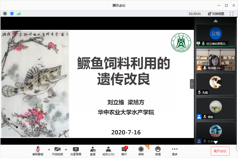 在线上腾讯会议组织召开依托于“长江经济带大宗水生生物产业绿色发展”教育部工程研究中心的“动物种质资源保护与挖掘利用”平台学术研讨会,报告由东京热