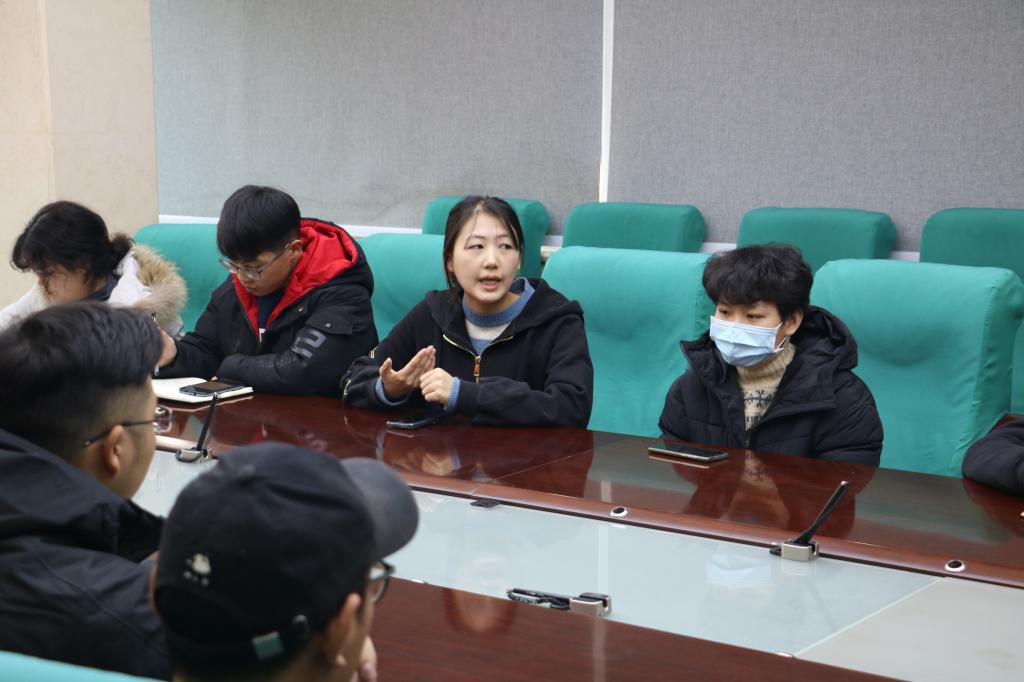 座谈会中曹玉琼围绕专业型硕士实行校企联合培养的模式与学生进行讨论,学生们积极参与交流,并给出了自己的意见。