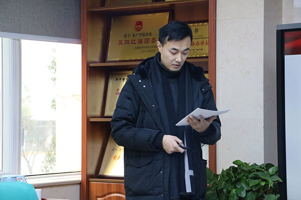 “组织党员学习党的各项规章制度,把党的章程‘印’于脑海;通过自学与定期集中学习相结合的方式,把党的制度‘写’于思想;发挥所学特长,把党的理论‘融’于实践”,渔业资源与环境系教工党支部书记周琼在总结展示过去一年的丰富活动中如是说,他讲到,学院年初制定的24条工作任务清单,支部对照清单逐一逐项落实,巡视整改期间,学院建章立制,进一步推进了“三会一课”制度化常态化,推进有节奏,年终有考评,有力地促进了支部全年党建工作有条不紊逐步推进。