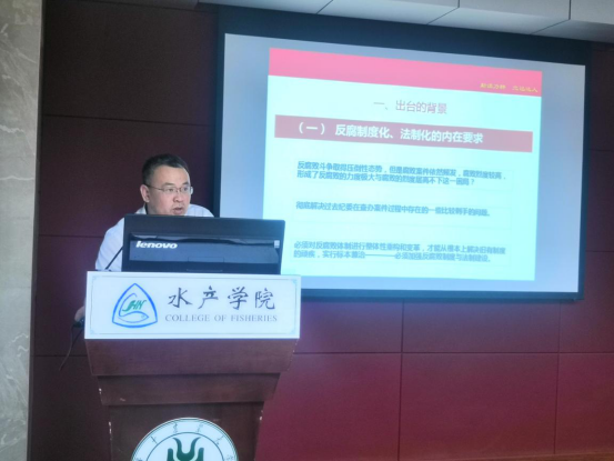 2019年党风廉政建设宣传教育月专题党课在水产楼109天辰报告厅进行。校纪委办公室主任邹亚受邀做了题为“改革正当时,良法应运生”的专题辅导报告。东京热