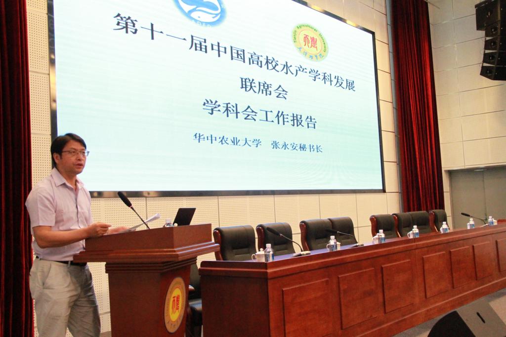 院长张永安教授做了联席会工作报告,对一年来联席会的工作情况进行总结,并提出联席会今后的工作计划。报告最后,张永安秘书长宣布下一届联席会主办单位为大连海洋大学,并从理事长王延文教授手中接过联席会会旗授予大连海洋大学。