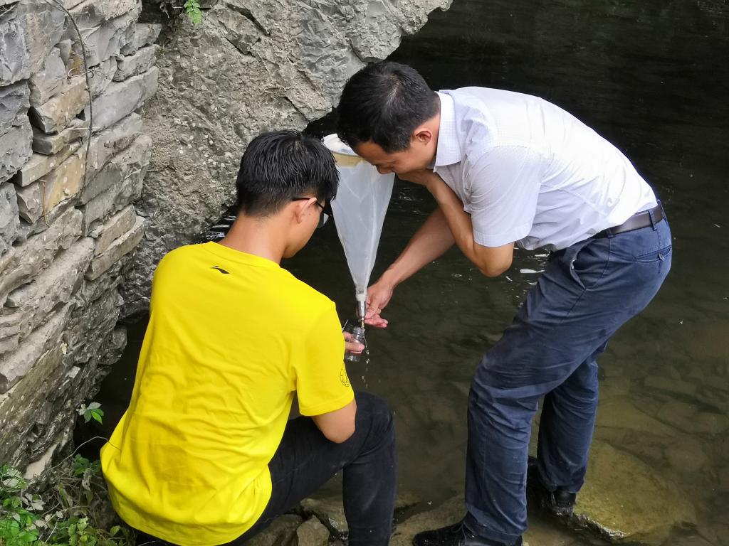 随后,渔业资源与环境系教工党支部书记周琼副教授与其两位研究生对大洪寨村几处饮用水源以及养殖水源分别进行了采样及检测,对其饮用水质安全情况进行了分析,对稻田养鱼的水源进行了可行性分析。