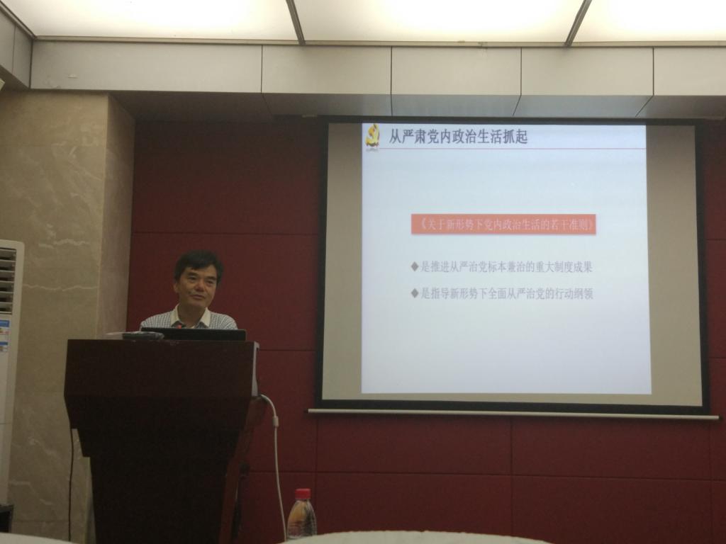 张韶东从“‘四个全面’伟大事业需要坚强有力的党” “从严肃党内生活抓起” “把党内监督的制度充分释放”“切实维护党中央权威和党的集中统一领导”等四个方面对《准则》《条例》的出台背景、重要意义、落实落地、遵照执行等进行了深入解读。
