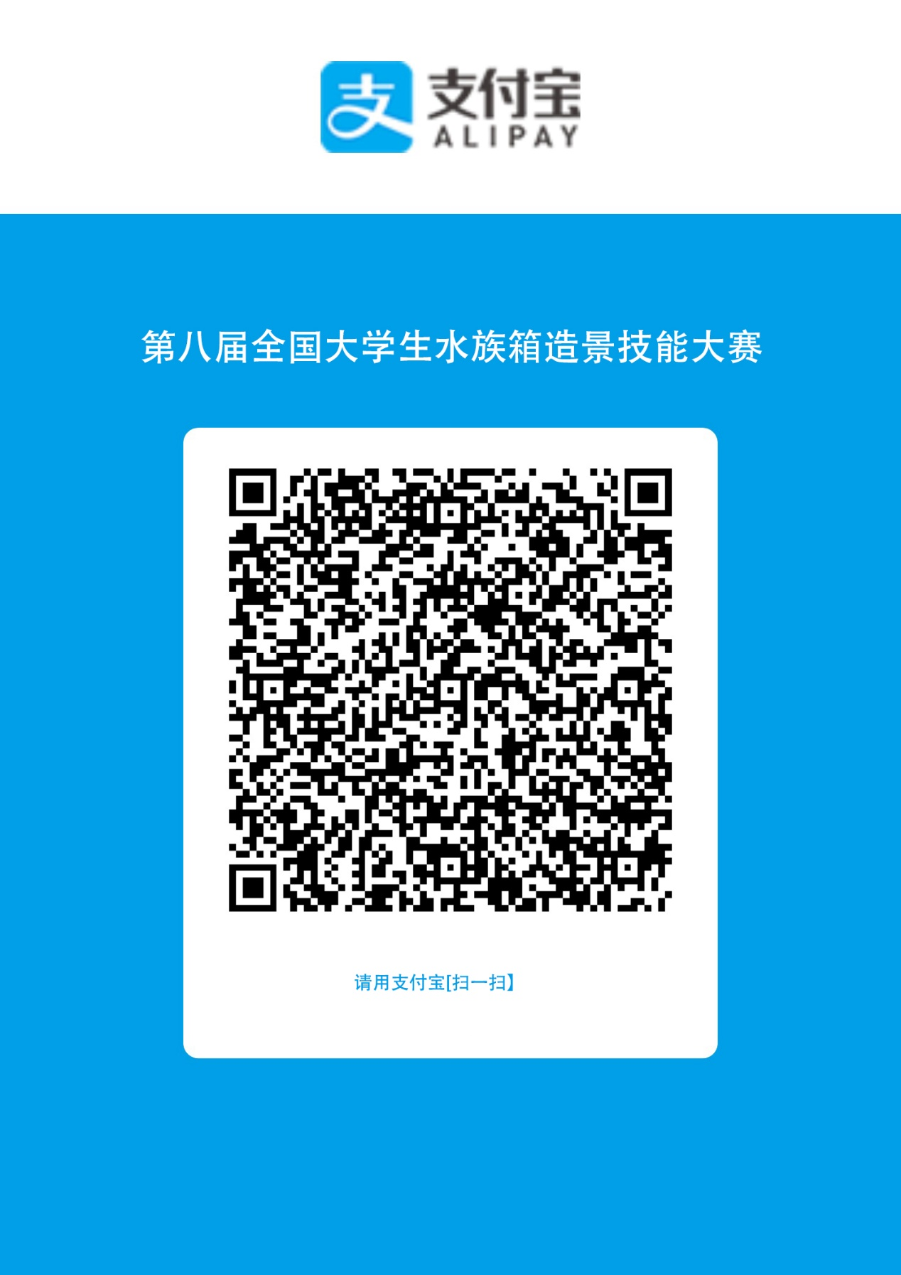 (2)提前支付宝二维码缴费:请务必备注“第八届全国大学生水族造景大赛”, 注明参赛学校名称及纳税人识别号、学生代表人数、教师代表人数、发票接收邮箱等信息。