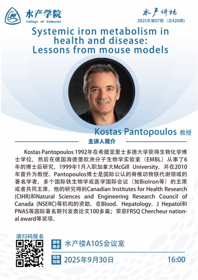 上一篇:【水产讲坛】系统/细胞铁代谢之间的调控联系及超越