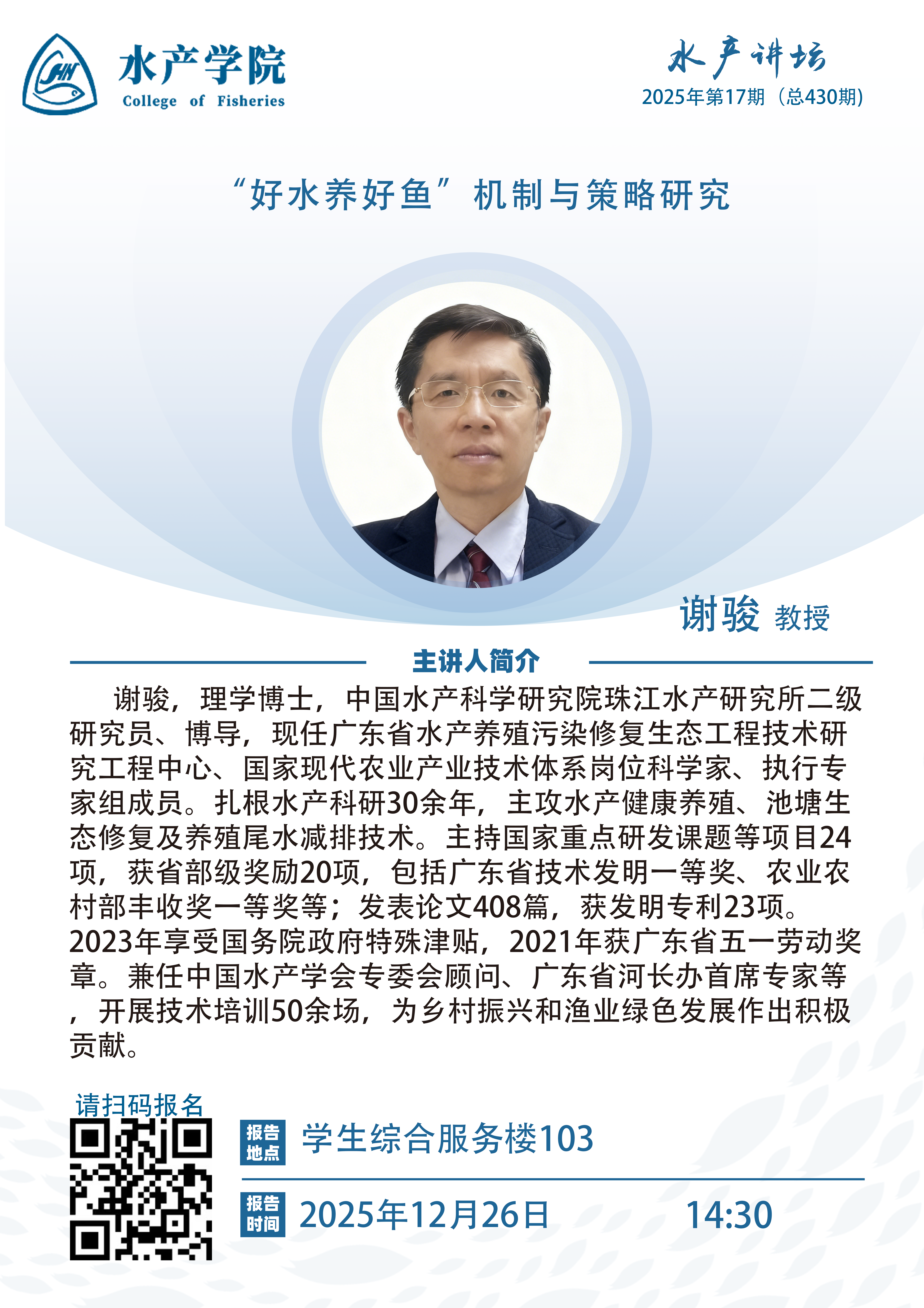 上一篇:【水产讲坛】水产动物营养饲料公共数据平台建设初探