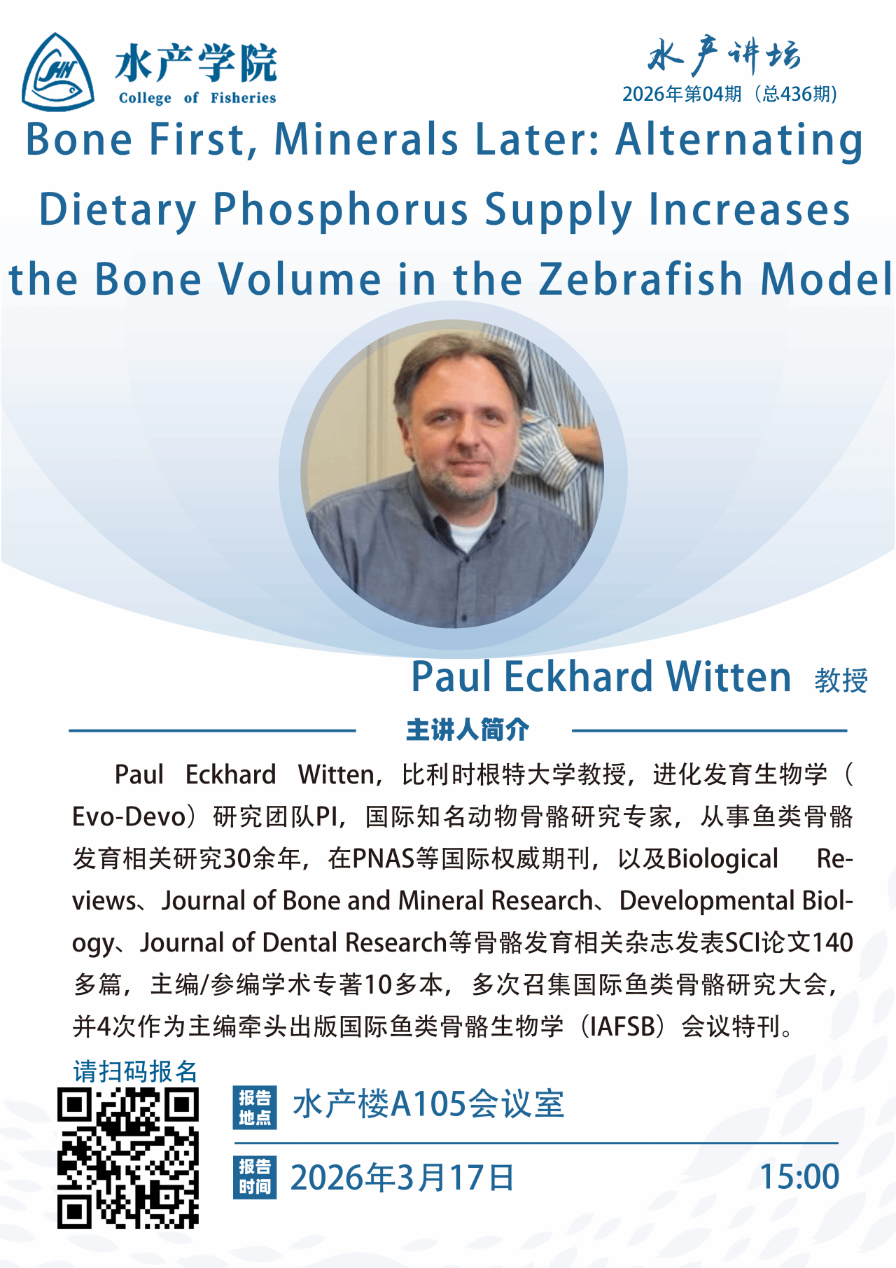 下一篇:【水产讲坛】The Zebrafish Dentition: A Model in Development and Evolution