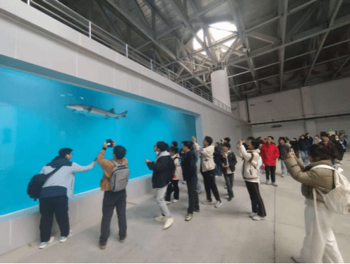 师生进行了热情接待。在中华鲟研究所展览馆,李洋向同学们详细介绍了长江各河段鱼类种群分布、长江流域生态恢复进展、中华鲟人工繁育技术等内容。展览馆内各式各样的长江特色鱼类深深吸引了同学们的注意。