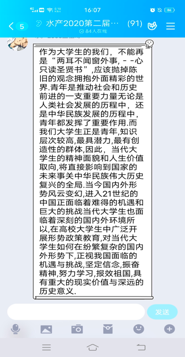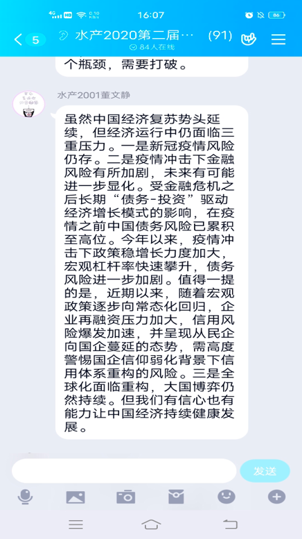 12月17日下午,东京热 理论学习部开展了理论学习日活动。本次理论学习日的主题是今年11月中国国民经济发展的状况,同学们发表了自己对中国经济发展的认识及感想。在小鲤鱼的组织下,理研会的同学们积极参与,踊跃回答,同学们一直表示,中国在疫情的冲击下,成功的实现了经济复苏,但是危险依然在,中国经济依然需要持续稳定的发展。