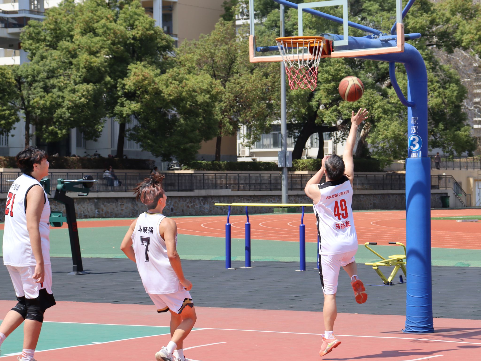 在篮球赛的开场哨声吹响前,教职工联队与新生联队已蓄势待发。教职工们沉稳地做着拉伸、跑跳、投篮等热身动作,丰富的赛场经验使他们动作娴熟、有条不紊;本科生们则活力满满,眼神中透露出对比赛的期待与兴奋,认真地完成每一个热身动作。