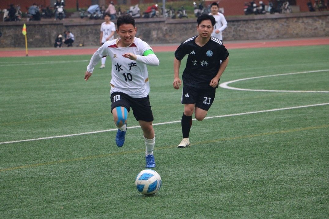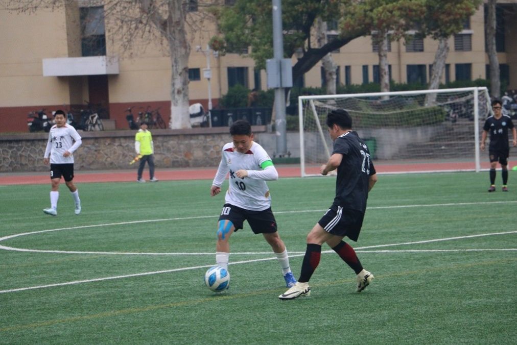足球队与生科学院足球队。随着裁判的一声哨响,比赛正式拉开帷幕。我方队员自开场便展现出强烈的竞技欲望和求胜决心,他们积极拼抢,与生科学院队员展开了激烈的身体对抗,力图将比赛的控球权牢牢掌握在自己手中,为胜利奠定坚实基础。