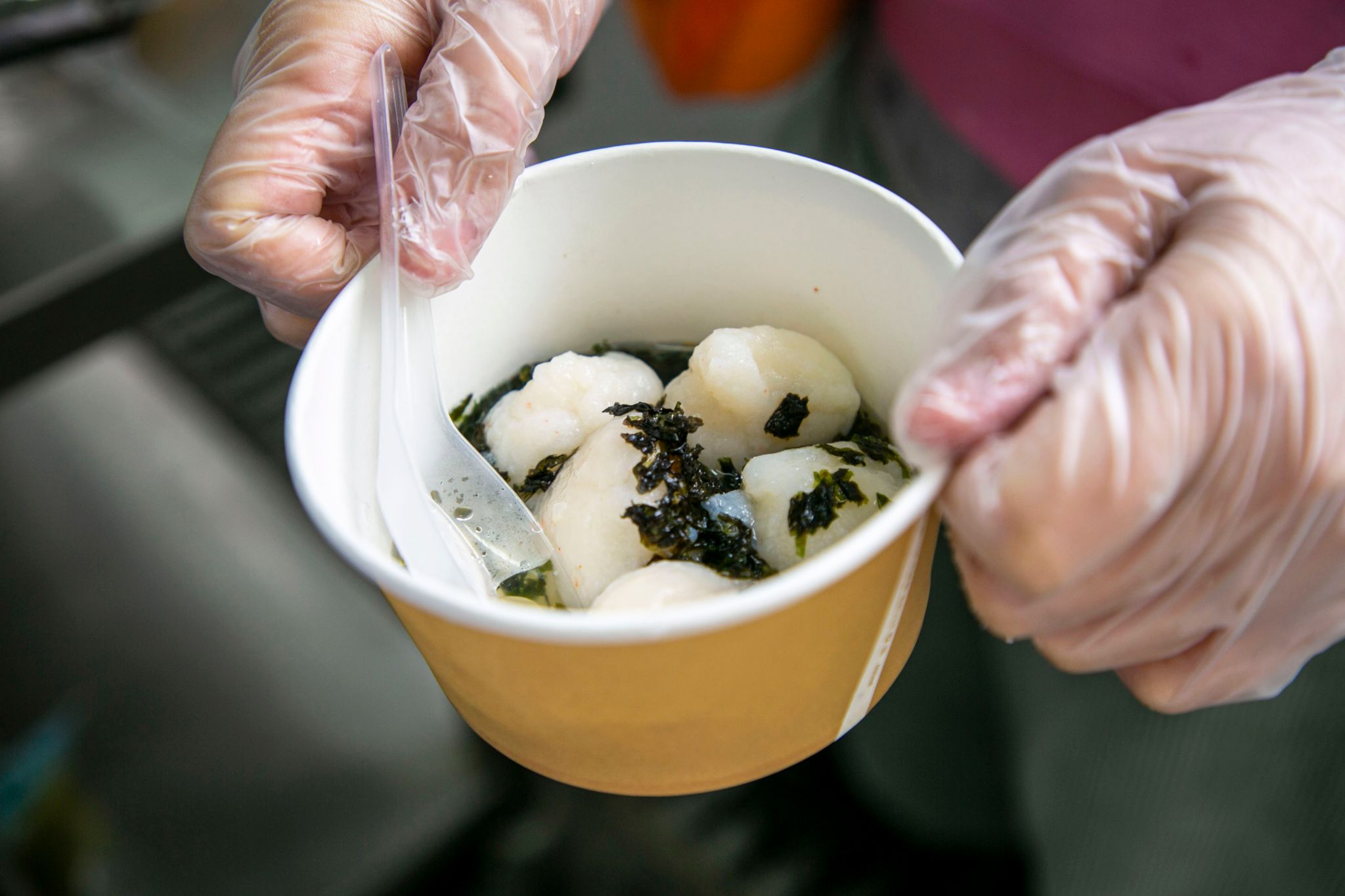 享受劳动的过程,当然也要享受劳动的成果。在活动最后,各个小组熬煮好鱼丸,辅以紫菜、葱花以及南美白对虾虾仁等,制作出一碗碗热气腾腾的可口鱼丸,师生一齐享用“劳动果实”。