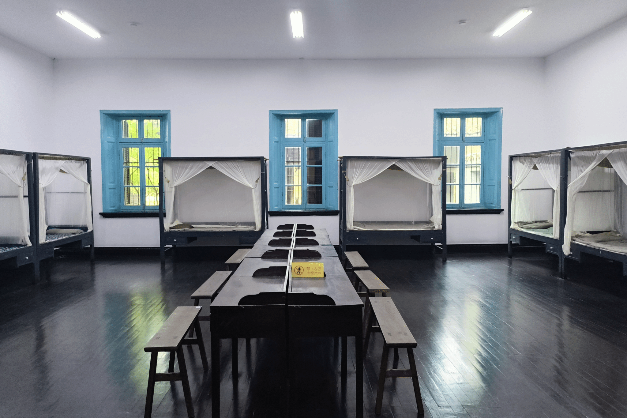 湖南省第一师范旧址内存留着毛泽东及其他学子的学习印记,队员们走进第八班寝室,想起毛泽东在寝室里倡导“三不谈”,即不谈金钱,不谈家庭琐事,不谈男女问题,对革命先辈们更加崇敬。