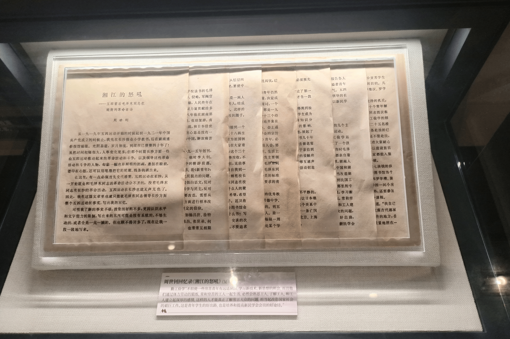 水产养殖学2305班程泽鸣在新民学会旧址久久伫立,看着那个时代的那一群人在艰苦环境下拟定成立学会的公告,更加了解了革命的不易以及我们青年的担当。