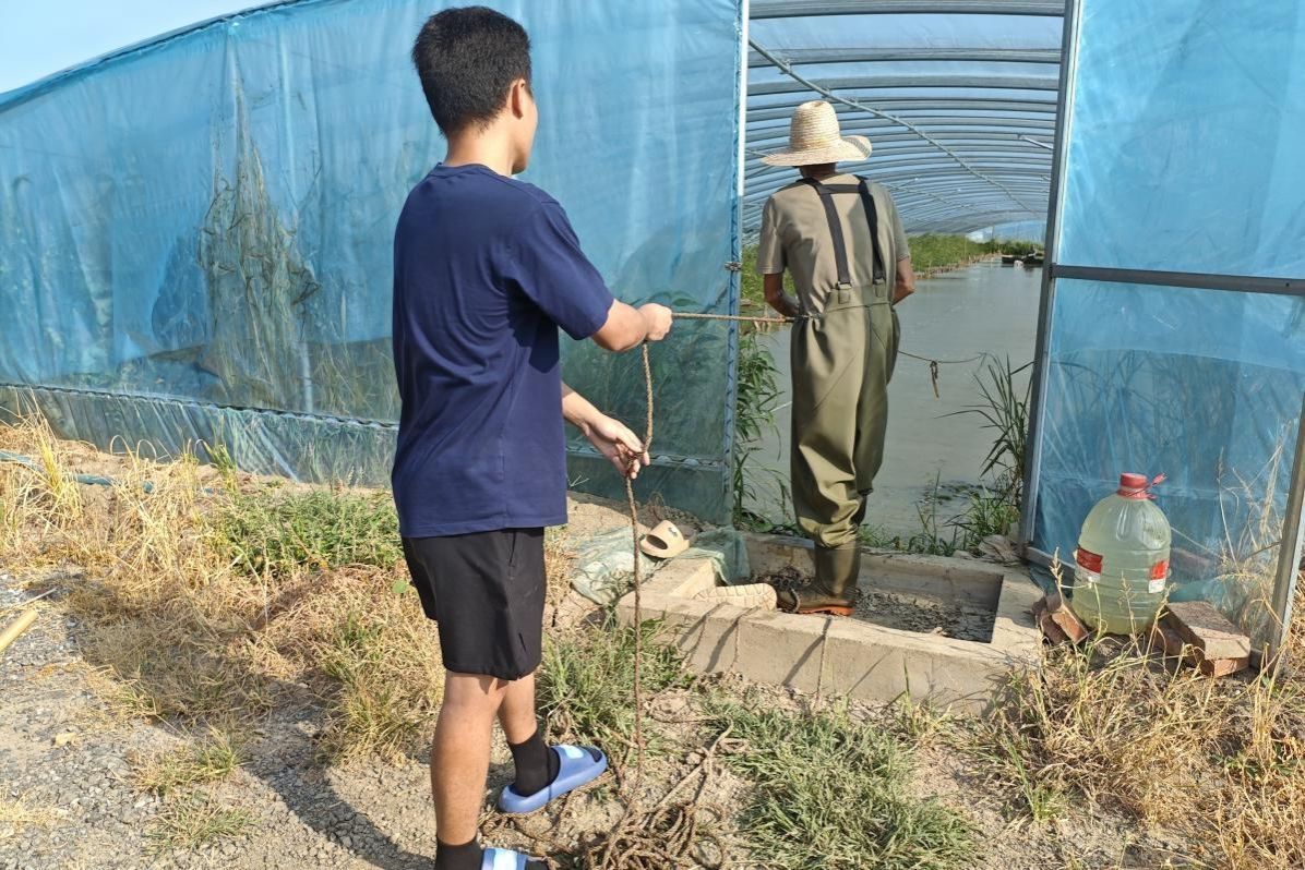 实践团队赴湖北潜江市楚垸湖,开展“耕读路上”暑期社会实践。团队成员在楚垸湖生态农业公司执行董事胡志明的带领下,前往虾稻种养一线,深入调研当地虾稻种养示范基地。