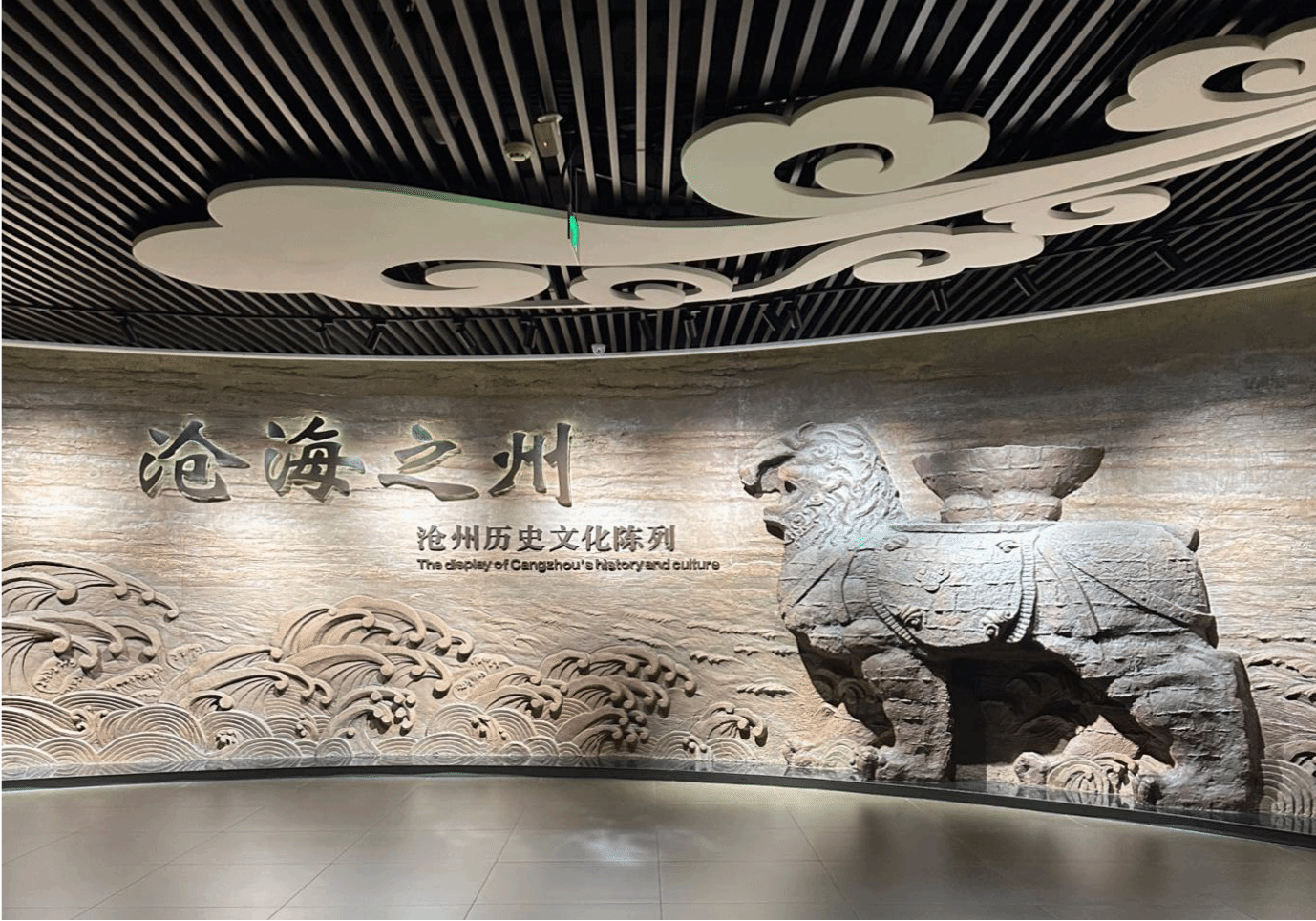 7月15日清晨,晴光洒满沧州街巷,李传贺与罗艺走进沧州博物馆。朱红门楣下的铜狮雕塑昂首挺立,展厅入口的大运河地图上,码头遗址星罗棋布。在讲解员的介绍下,二人了解到明清时期大运河如何让沧州成为南北物资交汇的商埠重镇。