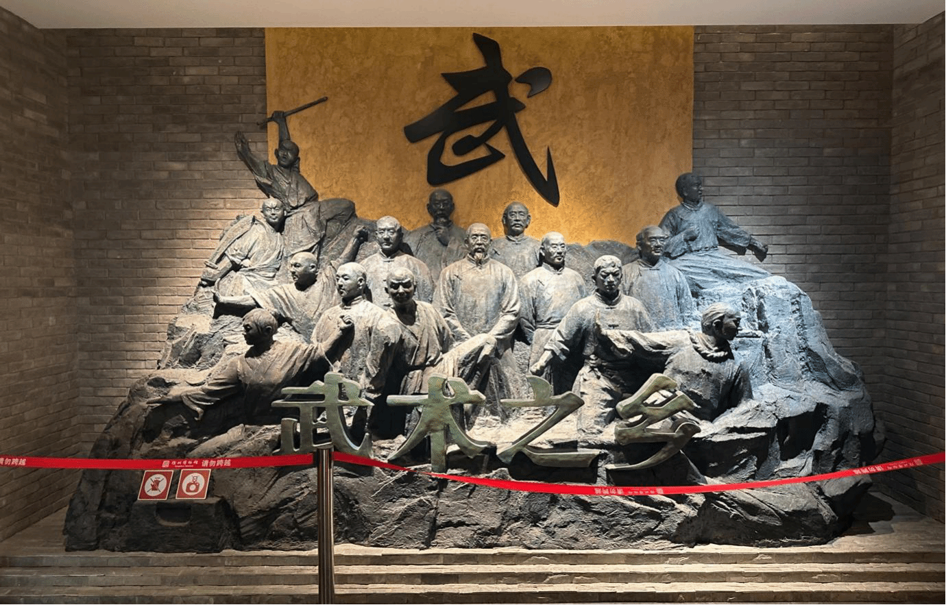“武术之乡”展厅内,泛黄拳谱、寒光闪闪的虎头钩,以及1930年代武术名家授徒的照片,让他们深刻体会“镖不喊沧”的江湖传奇。