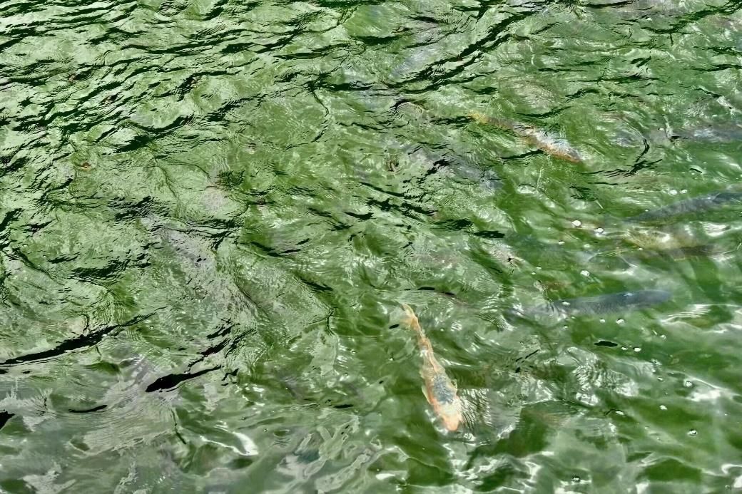 鱼塘里密集的多鳞白甲鱼和齐口裂腹鱼鱼苗(黄玫摄)