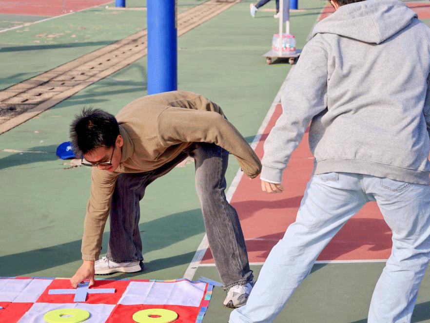 策划的“极速三子棋”活动将平板支撑、接力赛与三子棋巧妙融合,既比拼智慧,也挑战体能。师生们排起长龙,笑声与加油声此起彼伏。选手们俯身支撑、挥汗奔跑、精准落子,每一次对弈都充满趣味与激情。动物科学技术学院、动物医学院2403班的杨沁睿同学兴奋地说:“这个游戏真的太有趣了!我们互相鼓劲,玩得特别开心。输赢不重要,重要的是过程。”