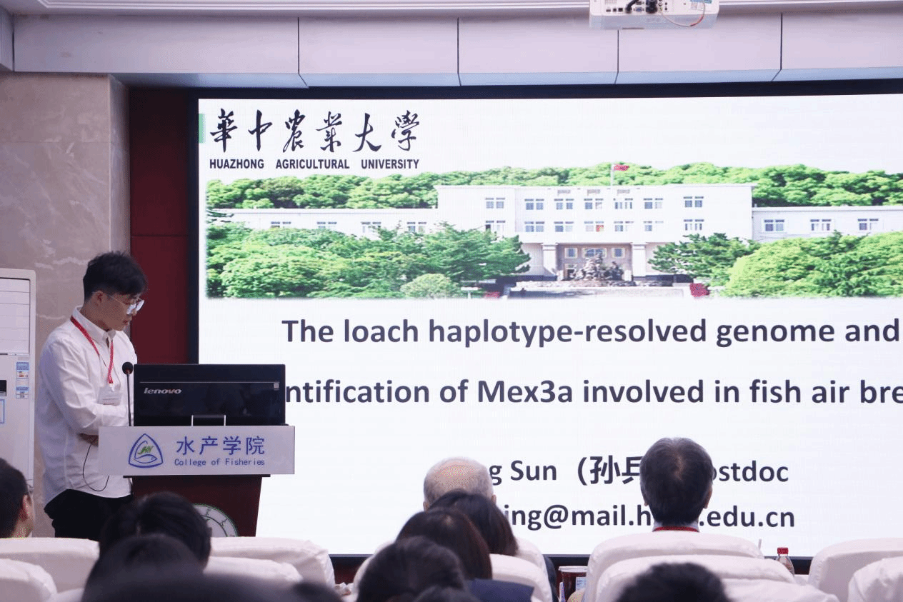 博后孙兵作了题为“泥鳅单倍型基因组解析与鱼类气呼吸基因mex3a的鉴定”的报告。该研究首次解析了泥鳅单倍型基因组,并发现mex3a基因在鱼类气呼吸特性中起关键作用。研究建立了首个泥鳅空气暴露模型,为水产养殖抗逆品种培育提供了重要分子靶点,对发展集约化养殖具有重要意义。
