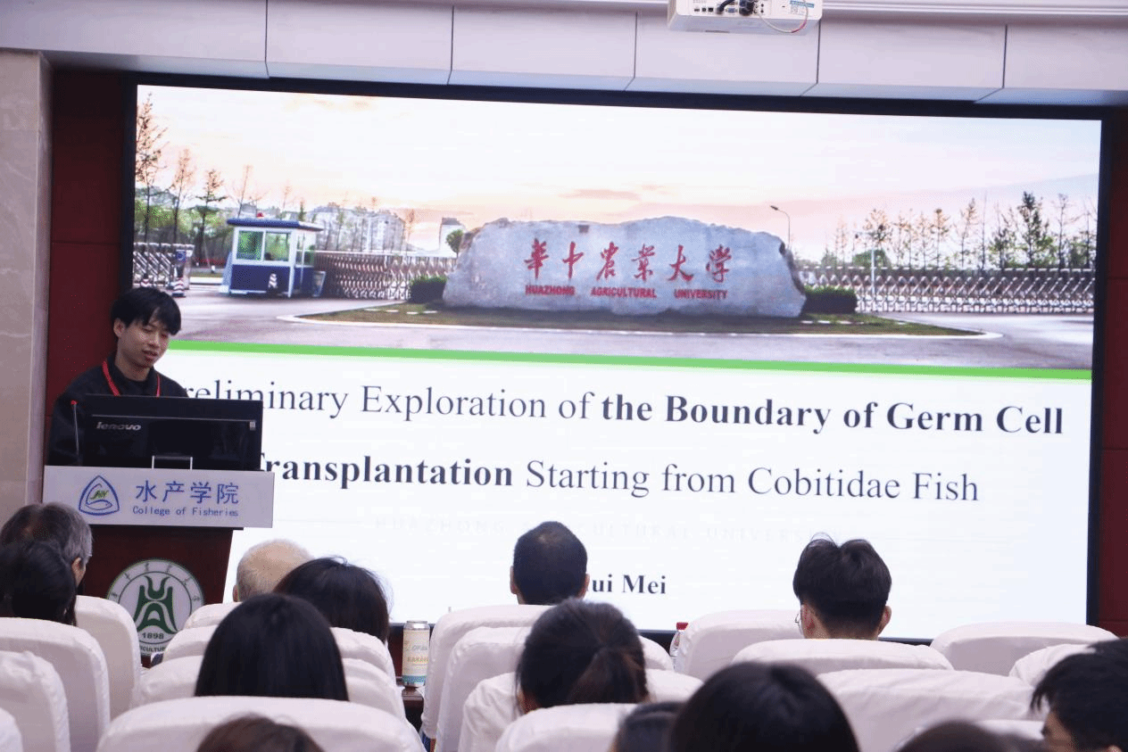 博士生梅熠辉作了题为“从鳅科鱼类出发对生殖细胞移植边界的初步探索”的报告。该研究聚焦鳅科鱼类的生殖细胞移植技术,探讨了不同物种间存在的“隐形边界”对细胞分化过程的阻碍问题。研究进一步尝试通过化学诱导和显微注射技术突破这一边界,为濒危鱼类的种质资源保护提供了新思路。