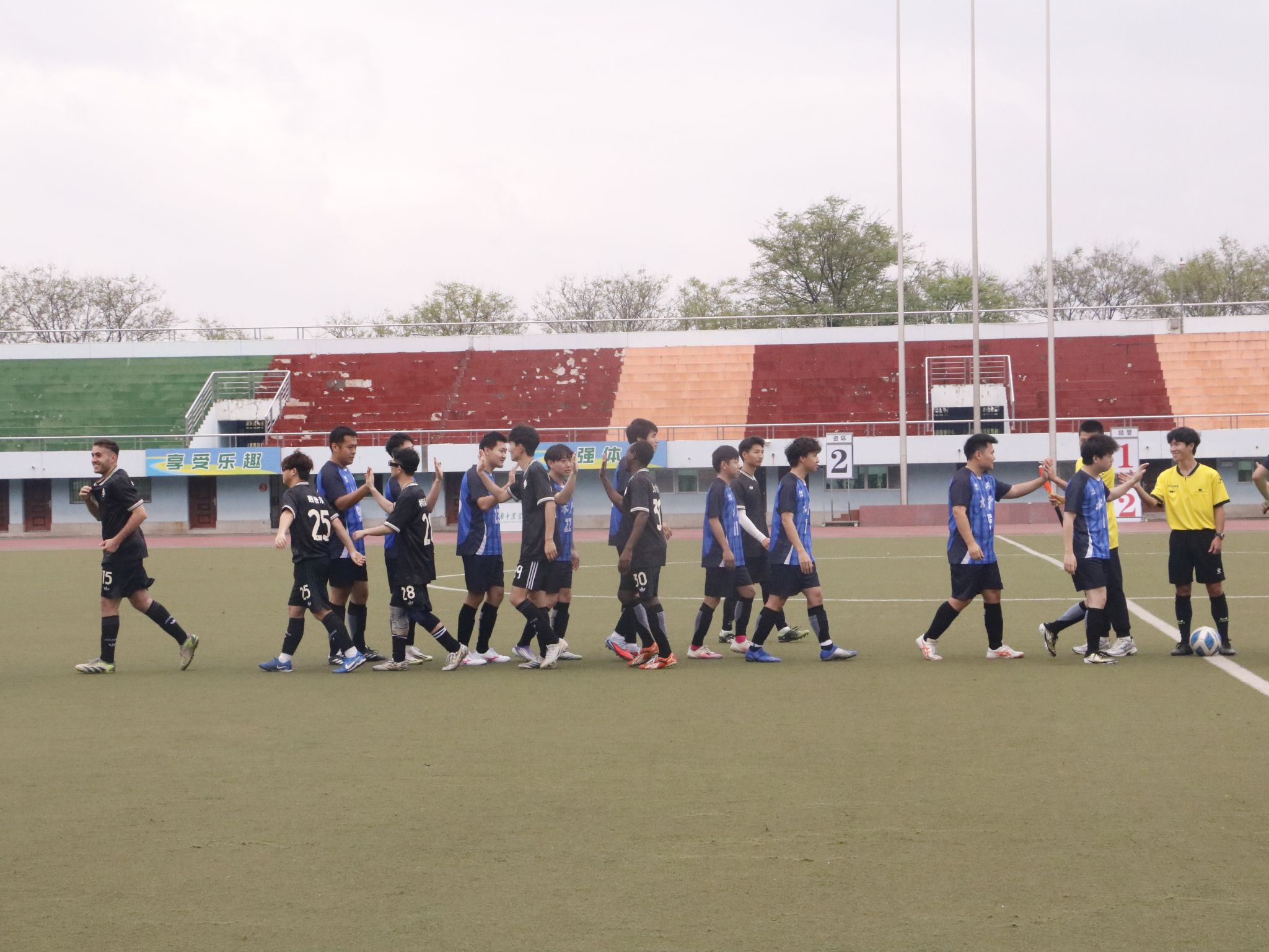 赛后对方学院球队友谊击掌(朱晓琳 摄)