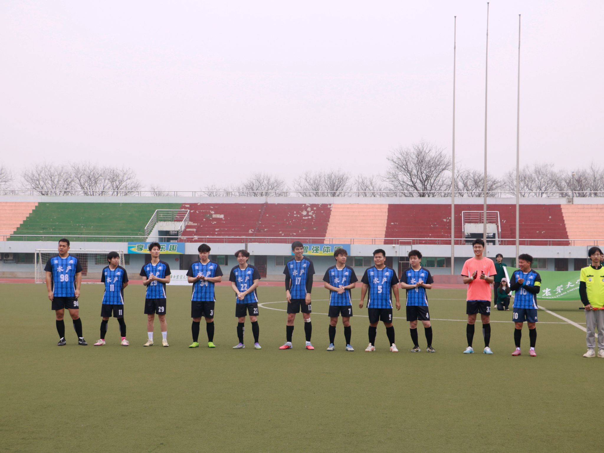 对阵强敌工学代表队。常规时间内双方激战难分高下,比赛再次被拖入点球大战。水产男足虽拼尽全力,但最终以点球2:3、总比分3:4惜败,斩获本次赛事第四名。
