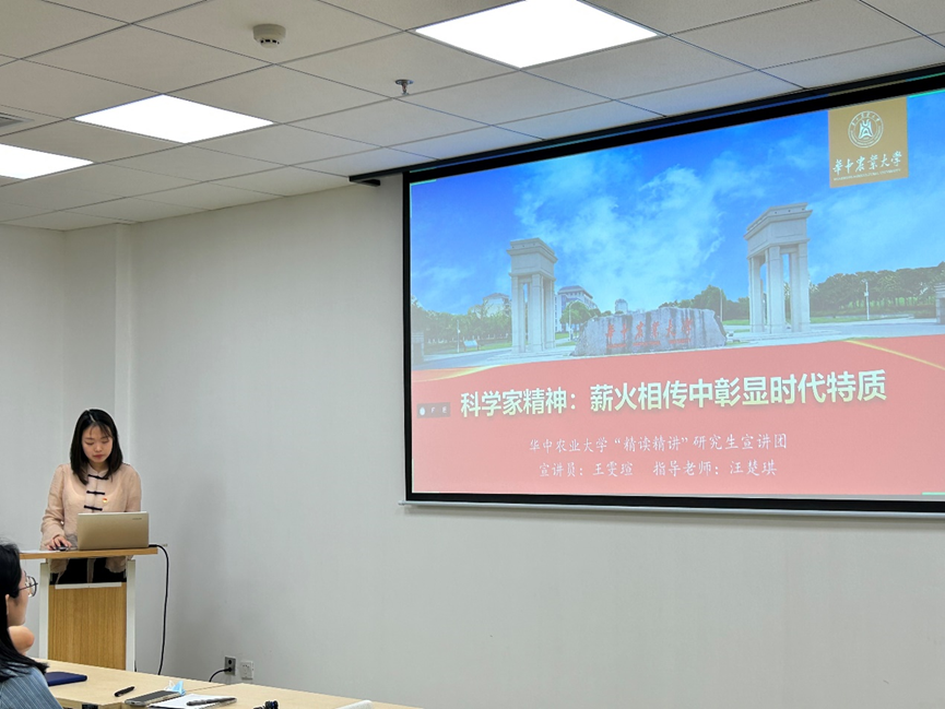“精讲精读”研究生宣讲团成员王雯瑄作了题为“科学家精神:薪火相传中彰显时代特质”的报告。