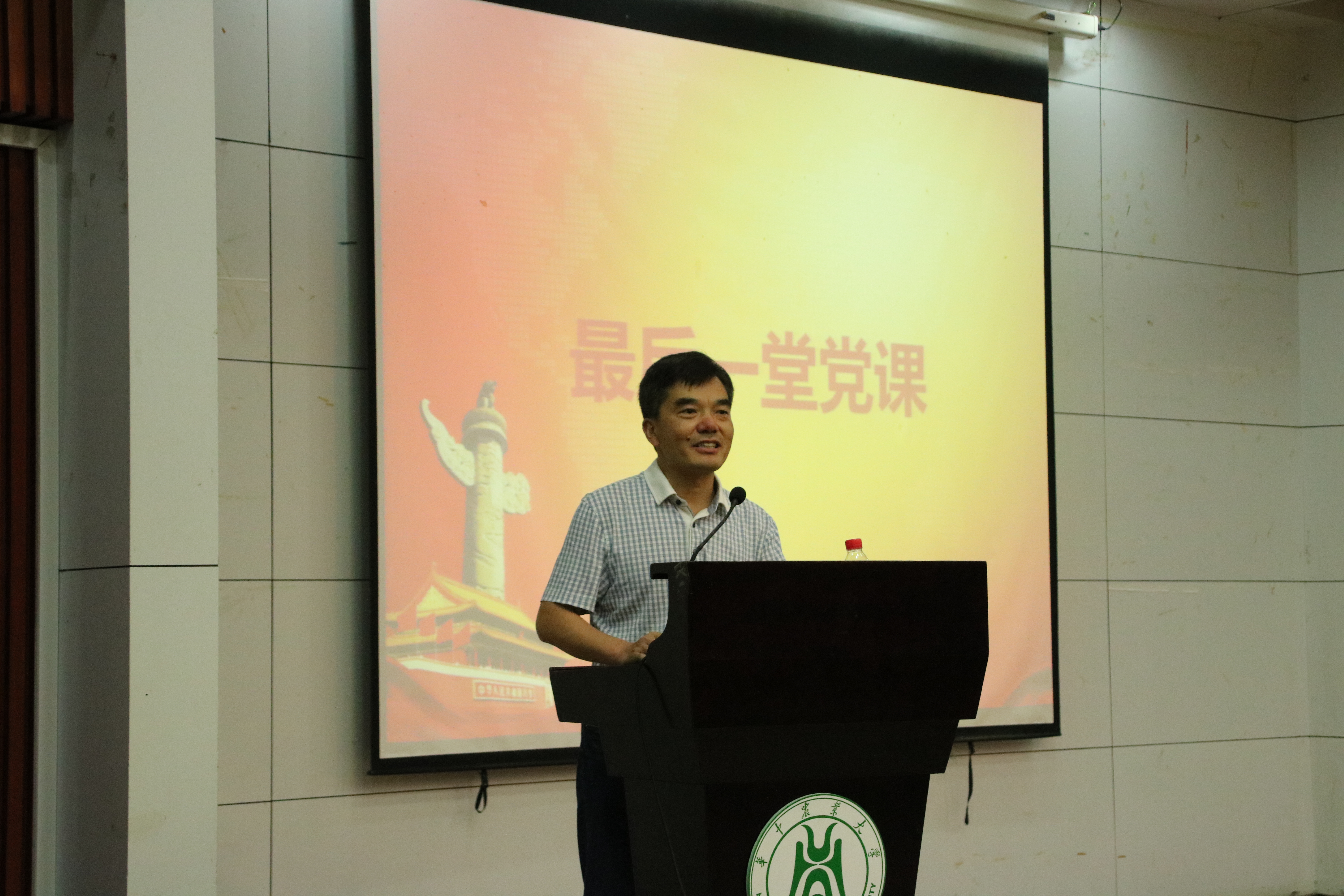 随后,学院党委书记张韶东为全体党员讲授了党课。他围绕牢记第一政治身份,做不忘初心的的人;努力践行党员职责,做有事业有作为的上善水产人;自觉遵守党纪党规,做两袖清风、一身正气、清正廉洁的人等三个方面展开讲述。他向大家提出要求:“作为一名真正的共产党员,要牢记一个党员的身份,勿忘初心,为党的事业努力奋斗;要牢记我们党全心全意为人民服务的宗旨,不辱使命。”他表示,临近毕业,大家可能会留恋、不舍,但是还是要勇敢的走出校门,去面对去经历社会风雨的洗礼,努力做一个对社会对国家有贡献的人。