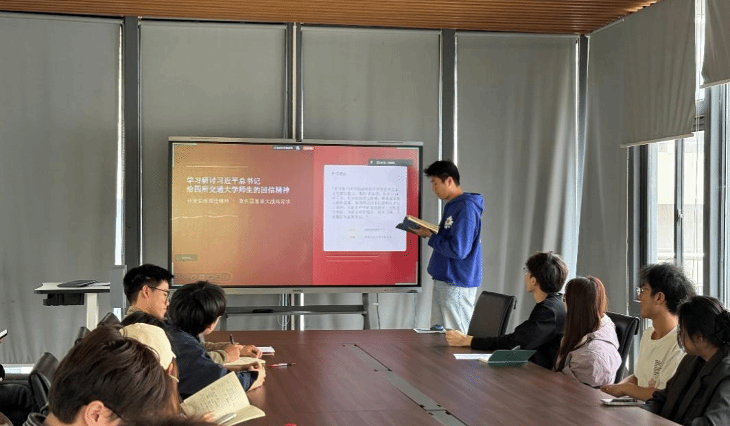 卓峥睿同志代表第三党小组专题领学习近平总书记给四所交通大学师生回信精神,梳理交大百年办学根脉与“西迁精神”核心要义,深刻阐释“爱国奋斗、听党指挥跟党走”的精神内涵。他号召支部党员传承“求实学、务实业”宗旨,聚焦国家重大战略需求,强化科技自主创新与人才自主培养,把个人科研理想融入国家渔业发展、农业现代化与种业振兴大局。