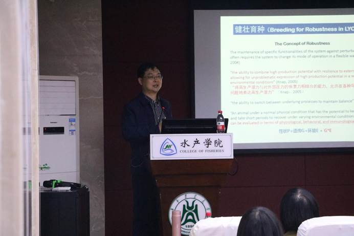 水产讲坛,并做了题为“大黄鱼抗虫等复杂性状基因组选择育种研究进展”的学术报告,受到师生的热烈欢迎。