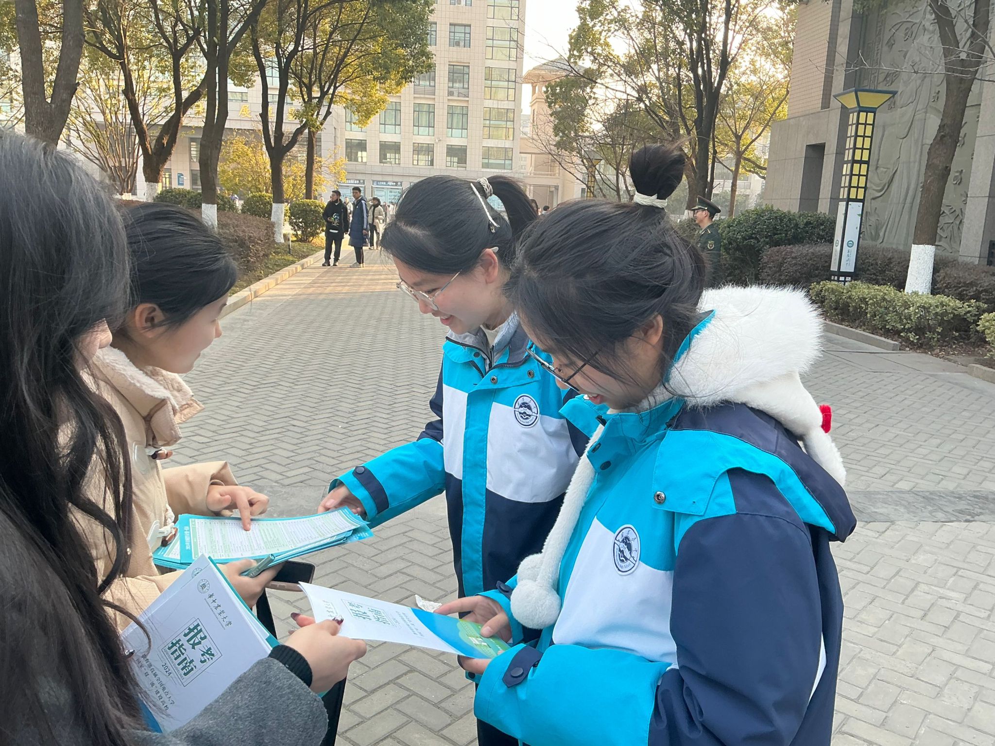 的实践团队走进襄阳五中,通过多种形式与高中生展开深入交流。在大成广场,团队成员为同学们分发了东京热