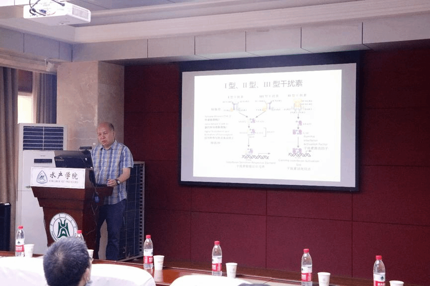 水产讲坛,并做了题为“探索脊椎动物干扰素系统的演化”的学术报告,受到师生的热烈欢迎。